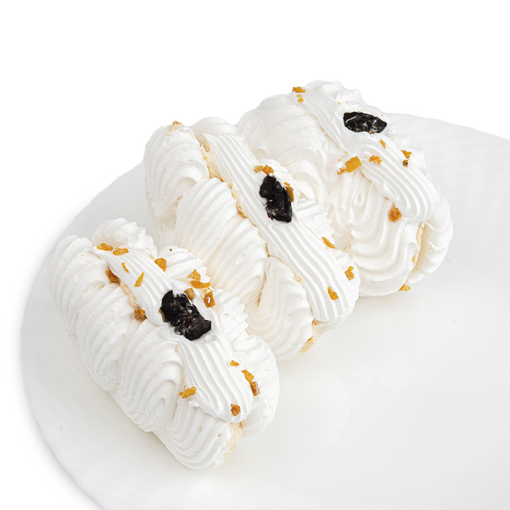Воздушное безе соединено нежным сливочным кремом с курагой, черносливом и грецкими орехами.