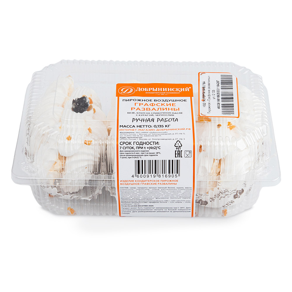 Сахар, яичный белок, курага, спред растительно-сливочный заменитель молочного жира (растительные масла, эмульгатор моно и диглицериды жирных кислот, антиокислитель концентрат смеси токоферолов, краситель каротины, масло сливочное, молоко обезжиренное), масло сливочное, чернослив, ядро грецкого ореха, молоко сухое цельное, пудра ванильная, патока крахмальная, регулятор кислотности кислота лимонная, винный напиток, коньяк (коньячный дистиллят, умягченная вода, сахарный сироп, краситель сахарный колер I простой), консервант сорбиновая кислота, ароматизатор ванильный. Может содержать следы глютена. Внимание! Продукт может содержать фрагменты косточек кураги, чернослива и скорлупы ореха. Количество в упаковке: 3 штуки.
