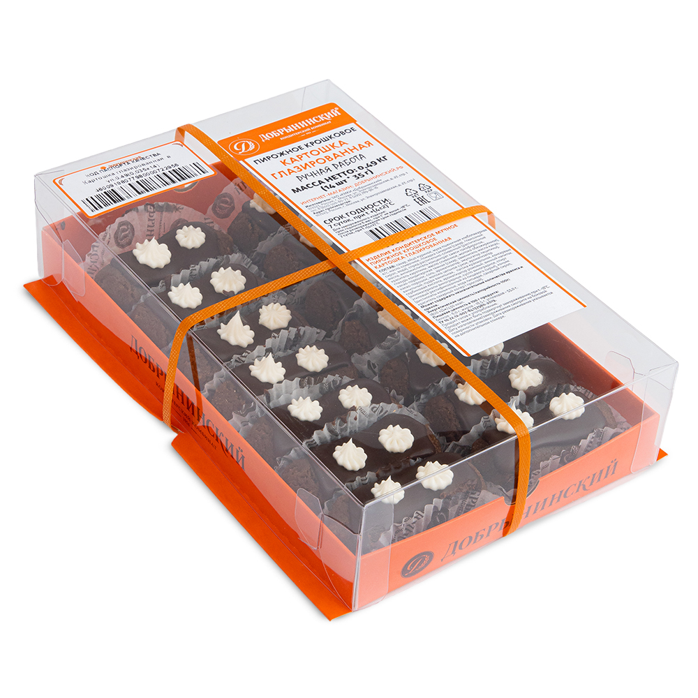 Яйцо куриное, сахар, мука пшеничная в/с, масло сливочное, помадка сахарная (сахароза, глюкозный сироп, вода), молоко сухое, спред растительно-сливочный (заменитель молочного жира, масло сливочное, молоко обезжиренное, эмульгатор моно- и диглицериды жирных кислот, антиокислитель концентрат смеси токоферолов, краситель каротины), патока, какао-порошок, глазурь кондитерская (сахар, какао-порошок, заменитель какао-масла, ароматизатор), консервант сорбиновая кислота, ароматизаторы натуральные ромовый, ванильный; разрыхлители: карбонат аммония, гидрокарбонат натрия; винный напиток, коньяк (коньячный дистиллят, умягченная вода, сахарный сироп, краситель колер сахарный). Может содержать незначительные количества арахиса и орехов. Количество в упаковке: 14 шт. по 35 г.