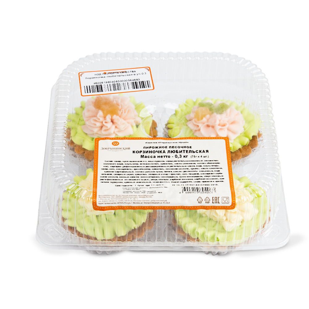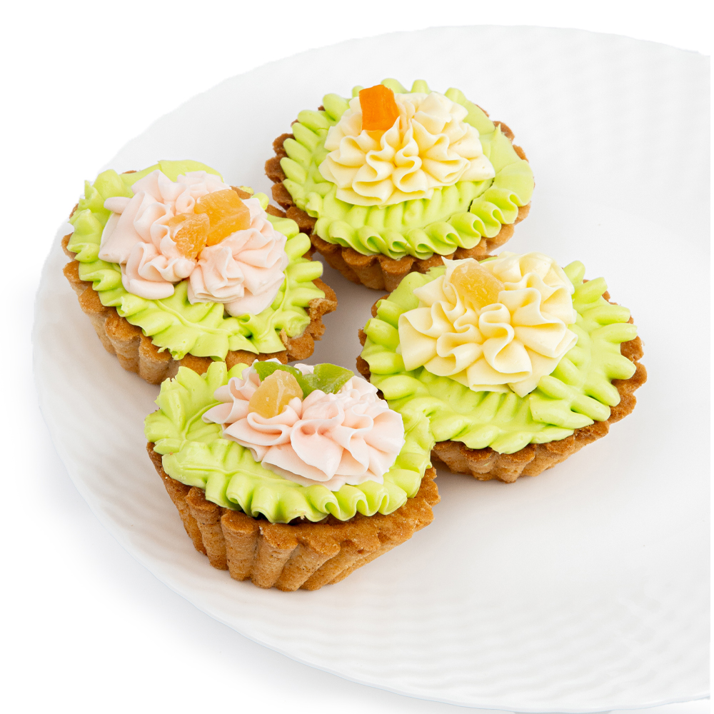 крошки. Украшены сливочным кремом и цукатами. Количество в упаковке: 4 шт. по 75 г.