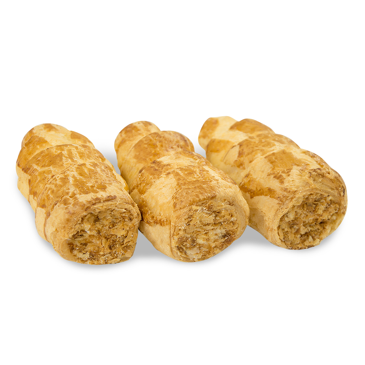 Слоеный полуфабрикат в виде трубочки, наполненный нежным белковым кремом.