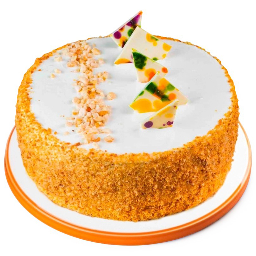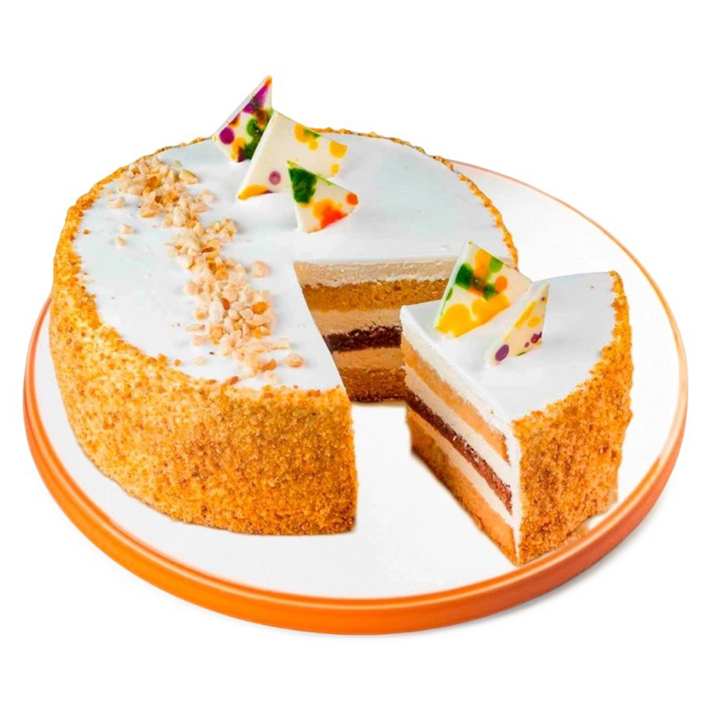 Крем на растительных маслах (растительные масла, глюкозный сироп, глюкоза кристаллическая, антиокислитель аскорбилпальмитат, регулятор кислотности ортофосфат натрия, соль пищевая, подсластитель сахарин, ароматизатор), сахар, мука пшеничная хлебопекарная в/с, молоко сгущенное с сахаром, яйцо куриное, смесь для заварного крема (пудра сахарная, молоко сухое цельное, загуститель альгинат натрия, сыворотка сухая молочная, стабилизатор пирофосфат, декстроза, консервант сорбат калия, краситель каротины, ароматизатор), гель декоративный кондитерский белый (сироп глюкозно-фруктозный, вода, сахар, загуститель целлюлоза, влагоудерживающий агент глицерин, ароматизатор сливочный, консервант сорбат калия, соль пищевая, ванилин, регулятор кислотности лимонная кислота), масло растительное, масло сливочное, спред растительно-сливочный (растительные масла, антиокислитель концентрат смеси токоферолов, краситель каротины, масло сливочное, молоко обезжиренное), пудра сахарная, глазурь кондитерская белая (сахар, заменитель масло какао, сыворотка молочная сухая, ароматизаторы (ванилин, сливки), эмульгатор лецитины), арахис, паста для сбивания (сахар, эмульгатор моно- и диглицериды жирных кислот, консервант сорбат калия), какао-порошок, коньяк (дистилляты коньячные, вода питьевая, сахарный сироп, краситель сахарный колер I простой), винный напиток (виноматериалы виноградные, сусло виноградное концентрированное, спирт этиловый ректификованный из пищевого сырья), разрыхлитель гидрокарбонат натрия, регулятор кислотности лимонная кислота, молоко сухое, соль, консервант сорбат калия, патока, красители натуральные (каротины, куркумин, медные комплексы хлорофиллов и хлорофиллинов, кармины), ароматизаторы (ванилин, ванильный, ромовый).
