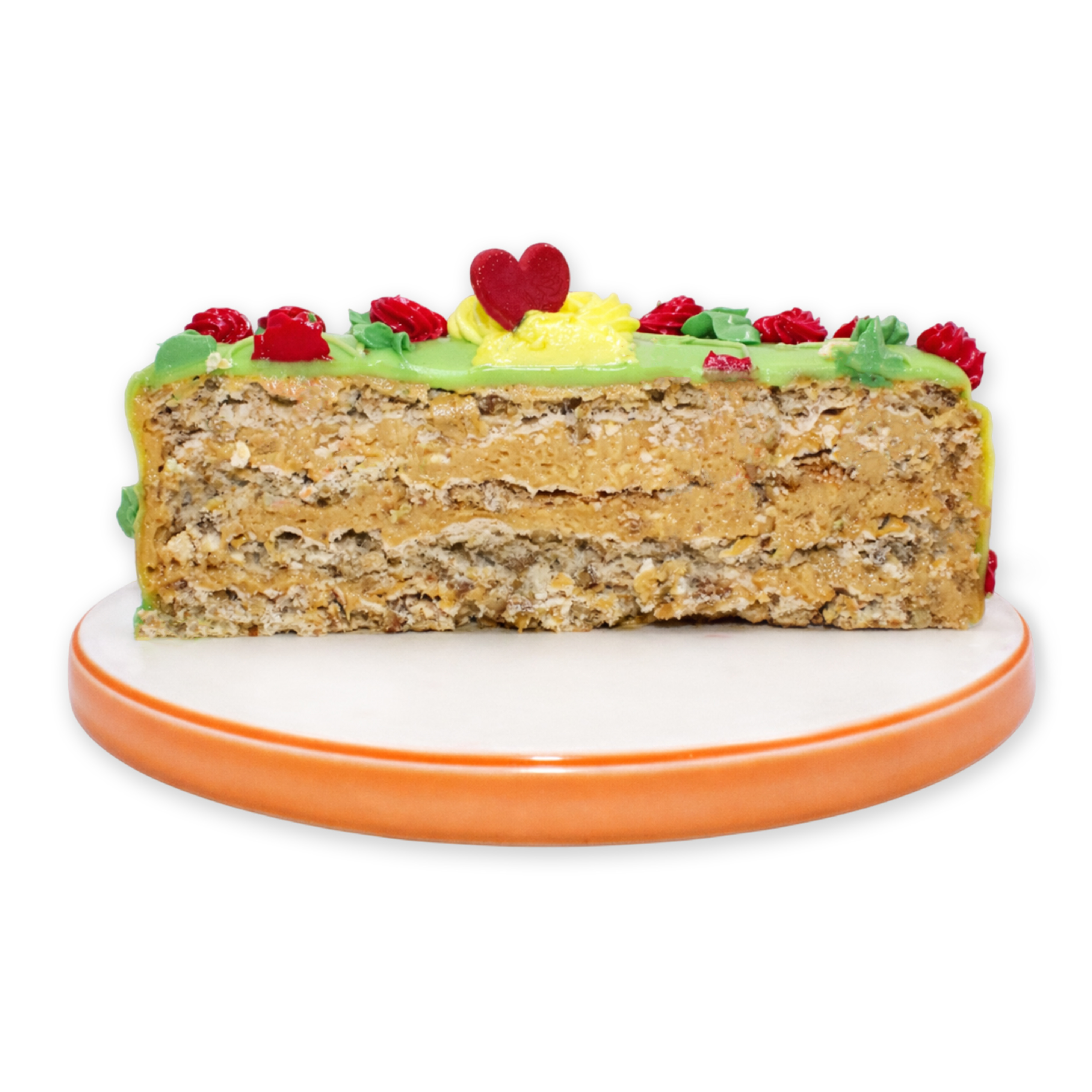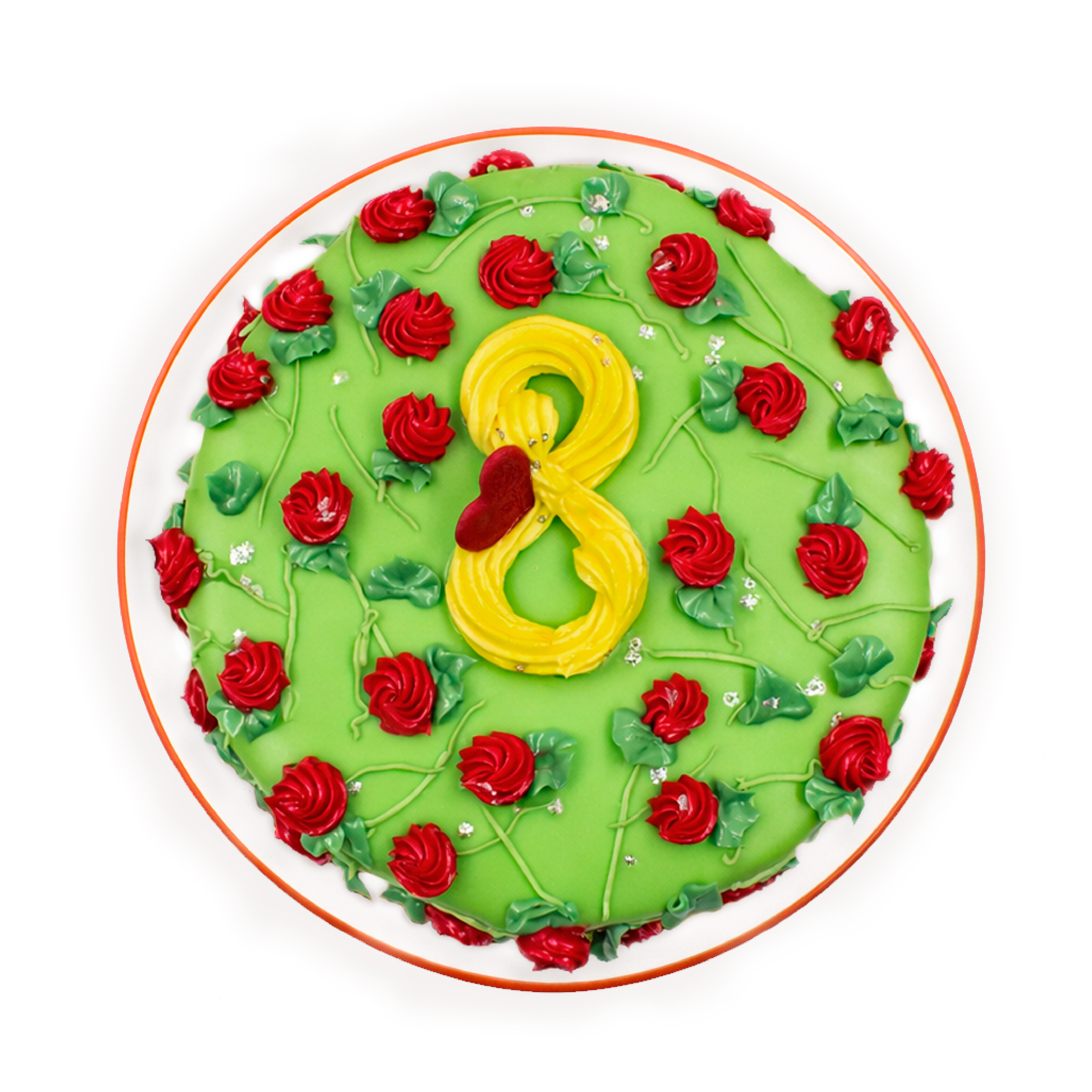Изысканный подарок для особенного весеннего праздника 8 Марта, созданный для истинных ценителей гастрономических открытий. Благородное сочетание хрустящего грецкого ореха, нежного сливочного крема и пикантной солёной карамели дарит утончённый баланс вкусов, а элегантное зелёное оформление с сахарными розочками напоминает о пробуждении природы.
