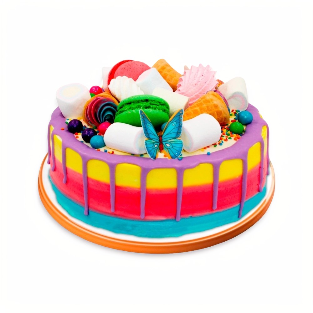 Яркий, вкусный! Действительно детство. На торте любимые всеми детьми вкусняхи. Украшен ярко и помпезно. Внутри нежнейший бисквит с очень приятным кремом. Спасибо