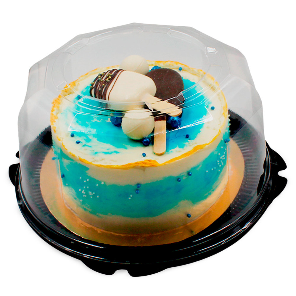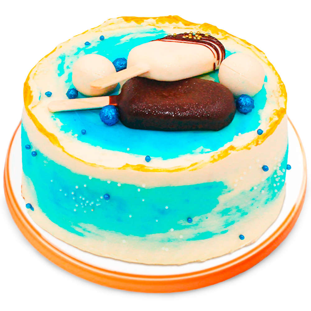 Торт красиво задекорирован муссовыми эскимо и шоколадными шарами.