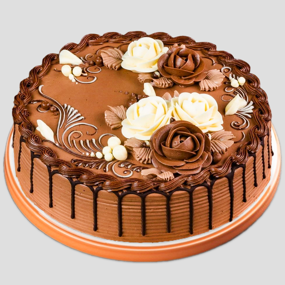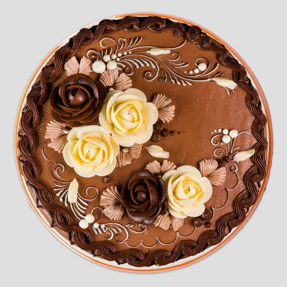 Красиво украшен, вкусный крем, не слишком сладкиц.