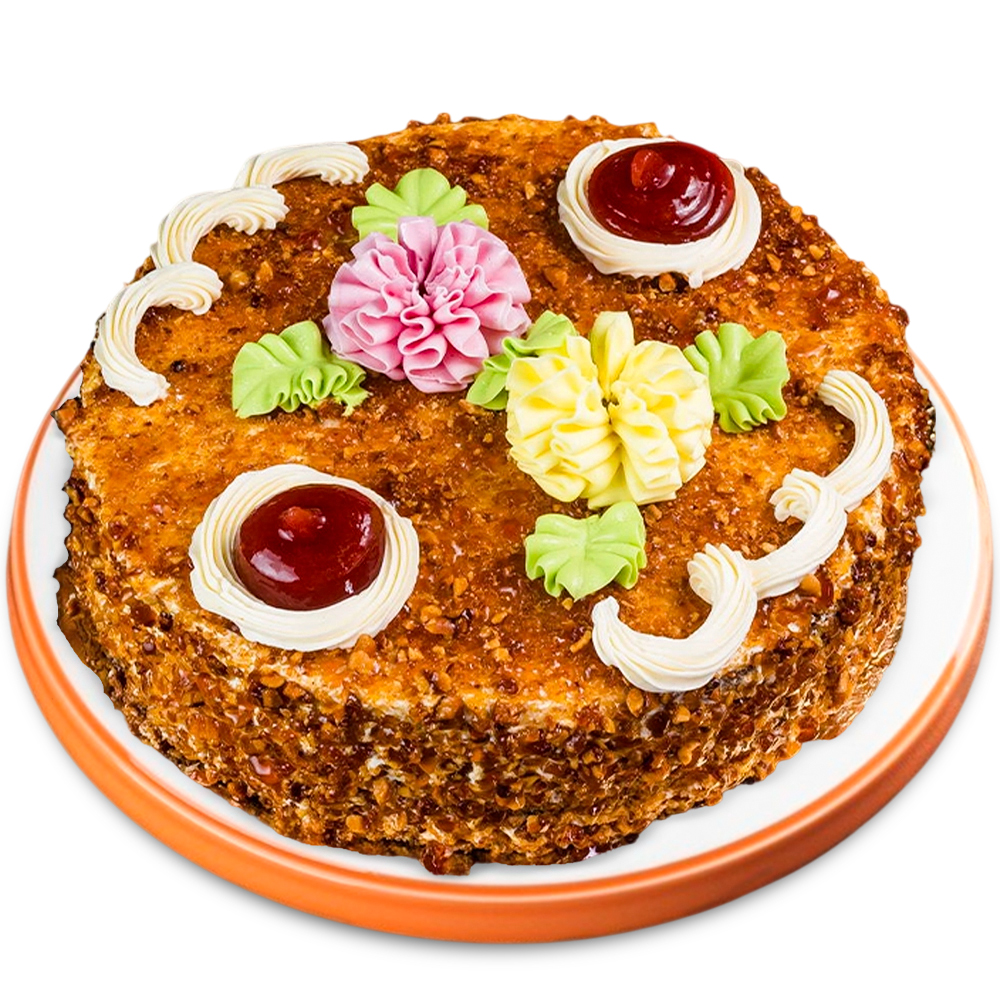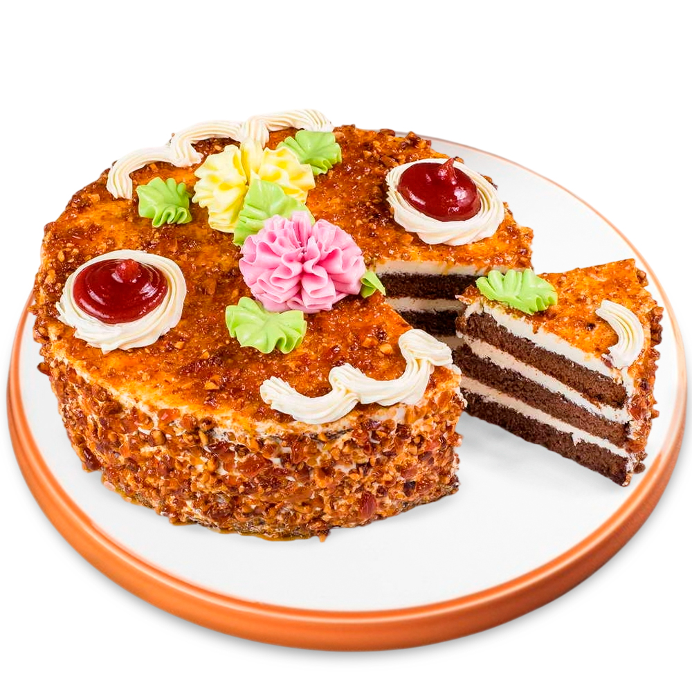 Очень понравился тортик. Как из детства. Вкусные коржи, пропитка, прикольно жуются орешки и карамельки.